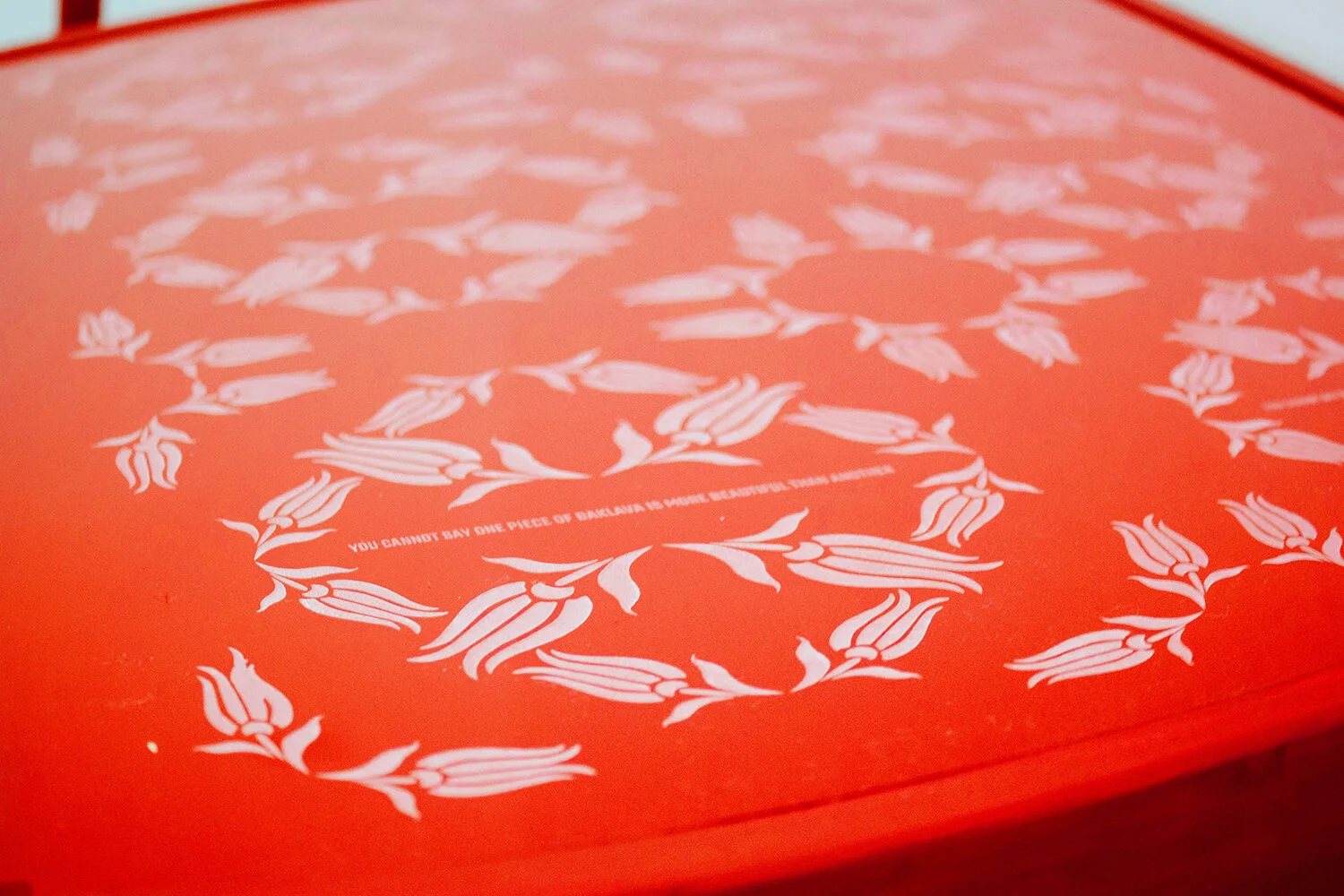 This immense gesture stems from how difficult it is to make baklava. It is made with yufka or phyllo, which is a very thin flaky dough. Traditionally, in order to get yufka to the right width, bakers spend hours rolling and spreading it over specially made marble tables. These tables are designed to provide just enough friction for the dough to stick when it is being spread so that the dough can be re-rolled over and over. To test if the yufka is the right width, the head baker then drops a metal coin from a low distance. If the coin pierces the dough than it is thin enough to bake. The fragility of the dough is doubled by its tendency to dry out quickly. This means that bakers must keep the dozens and dozens of layered yufka damp before baking the dough. The process is complex and immensely scientific, making it difficult to repeat in lower tear restaurants and in-home kitchens.